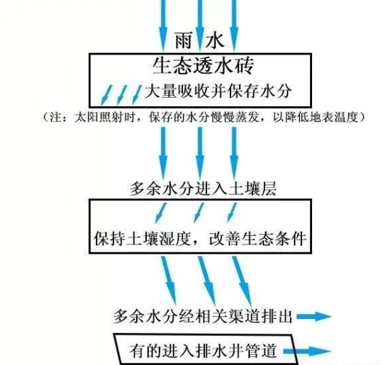 什么是海綿城市?簡言之,就是城市像海綿一樣有彈性,能吸水、蓄水、排水,實現(xiàn)水循環(huán)利用、有效防內(nèi)澇。鋪設(shè)生態(tài)透水磚,是除雨污分流改造外,我市海綿城市建設(shè)的一個重點和亮點。鋪有生態(tài)透水磚的人行道,看上去好像與鋪設(shè)普通磚的人行道沒什么兩樣,但仔細一看就會發(fā)現(xiàn)有所不同,生態(tài)透水磚表面布滿小孔,而普通磚表面比較光滑。這是因為生態(tài)透水磚以礦渣廢料、石屑、普通硅酸鹽水泥為主要原料,設(shè)計有一定孔隙率,經(jīng)高頻振動加壓而成,普通磚則主要用石粉廢渣、低標(biāo)號水泥等制成下雨時,生態(tài)透水磚能大量吸收并保存水分,達到飽和狀態(tài)后保存不了的多余水分則透過磚體進入土壤層,從土壤層出來后的多余水分最后經(jīng)相關(guān)渠道排出,有的通過排水井管道排出。而普通磚只能吸收少量水分,大部分水經(jīng)由地表流掉,易導(dǎo)致路面積水。