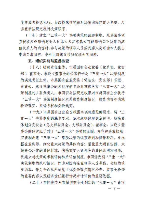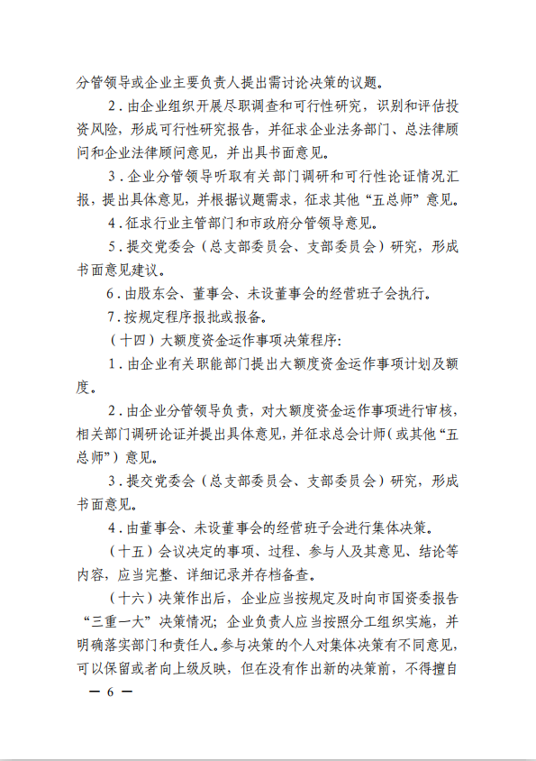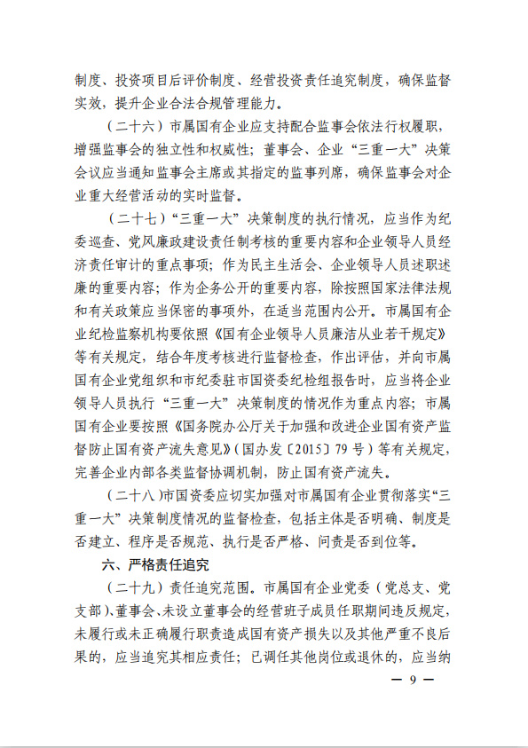 關(guān)于進(jìn)一步規(guī)范市屬國有企業(yè)貫徹落實“三重一大”決策制度實施意見(國資黨委[2020]21號)